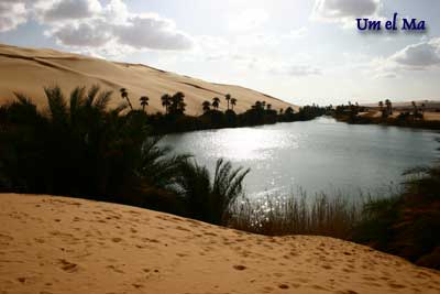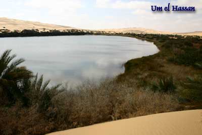 Donnerstag, 2. Februar 6, Tag 11 Ganz in der Früh ist der Sand feucht und wir wanden in einem weichen Feld ganz kapital ein. Ganzen Tag geht es weiter zwischen und über Dünen. Am Nachmittag erreichen wir den ersten der inmitten der Sanddünen gelegenen Mandara-Seen, den wenig bekannten Um el Hassan. Hier genießen wir ein verspätetes Mittagessen und fahren dann ohne große Orientierungsprobleme weiter zum Um el Ma und schließlich zum Mandarasee. Als wir spät am Abend den Campingplatz in Terkiba erreichen, zeigt der Tageskilometerzähler 75 km an. Ursprünglich wollten wir uns heute Vormittag in Ubari den Dreieckstempel holen, den wir innerhalb von 7 Tagen nach der Einreise in Libyen im Pass haben müssen, doch durch den Sandsturm haben wir einen Tag Verspätung und morgen, Freitag, ist das Office geschlossen. Wir beschließen daher, den Stempel am Samstag von einem Angestellten des Campingplatzes besorgen zu lassen und einen zweitägigen Ausflug ins Wadi Mathendous zu machen. Km 75/3.036.