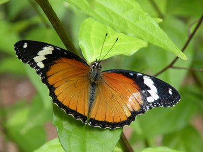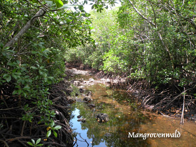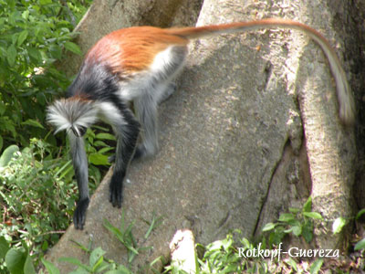 Donnerstag, 22. Jänner 9, Tag 5, Jozani Forest Früher war die ganze Insel von einem Urwald bedeckt, der heute weitgehend abgeholzt ist. Zum Schutz des noch verbliebenen Urwaldes und der darin lebenden Tiere hat man das Jozani Forest Reserve gegründet. Für 10.000 TZS (5,90 EUR) p.P. wird uns eine eineinhalbstündige Führung durch den Park versprochen, in Wirklichkeit laufen wir dann über drei Stunden durch den Urwald und es ist keinen Moment langweilig. Naturgemäß kann es in einem so kleinen Areal keine großen Wildtiere geben, auch wenn angeblich noch einzelne Sansibarleoparden hier leben sollen ("alle paar Jahre wurden Fußabdrücke gesichtet"). Wir sind daher nicht erstaunt, dass uns der Führer zunächst mit der Urwaldflora vertrautt macht: Mahaghoni- und Eukalyptusbäume, Parasitenbäume, diverse Palmen und allerlei niedere Gewächse. Dann gibt es aber doch auch einiges an Fauna zu sehen: einen Zentimeter große Frösche, Geckos, Eidechsen, "Blue Monkeys", dabei dürfte es sich um Meerkatzen handeln, und schließlich treffen wir noch auf mehrere Familien von Colobus-Affen. Die Zanzibar-Red-Colobus-Monkeys oder Rotkopf-Guerezas, eine vom Aussterben bedrohte Art, kommt nur auf Sansibar vor und auch nur mehr im Jozani-Forest. Da die Affen Obstbäume umbringen, indem sie alle ihre Blätter auffressen, wurden sie von den Farmern der Insel gejagt. Erst seit die Farmer Schäden aus den Parkeintrittsgebühren abgegolten erhalten, nimmt ihre Zahl wieder zu: mehrere Hundert soll es jetzt wieder geben. Die Affen sind etwa 70 cm lang und haben einen gut einen Meter langen Schwanz. Sie tragen einen weißen Haarschopf und haben einen rotbraunen Hinterkopf, oft auch einen gleichfarbigen Rücken. Da bei den Colobusaffen der Daumen nur rudimentär angelegt ist oder ganz fehlt, werden sie auch Stummelaffen genannt. Sie leben in Familien, die Weibchen gebären alle zwei Jahre ein Junges. Sie sind 6 Monate trächtig und säugen das Junge etwa eineinhalb Jahre. Nun machen wir noch einen interessanten Abstecher in den Mangrovenwald, den man auf Stegen begehen kann. Im Sumpf finden sich viele Krabben. Am Nachmittag besuchen wir noch das neue Schmetterlingscenter in Pete (6.000 TZS = 3,57 EUR p.P.), ein begehbares Terrarium, das leider nicht durch die erhoffte Artenvielfalt an Faltern aufwarten kann. Km 80/400/17.030. |