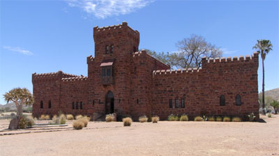 Mittwoch, 18. November 9, Tag 4, Sossusvlei Ich habe keine Ahnung, womit ich meinen Bauch beleidigt habe, aber er rebelliert mächtig und macht mir einen Brechdurchfall mit Kreislaufkollaps erster Klasse. Ich komme grade noch rechtzeitig aus dem Auto und dann sofort neben ebendiesem zu liegen ... Dass ich das Frühstück ausfallen lasse, versteht sich von selbst. Später sitze ich, die Beine hochgelagert, auf einem Campingsessel und beobachte mit Susi die Scharen von Touristen, die in Reih und Glied die Düne besteigen. Bin ich froh, dass ich gestern alleine oben sein konnte und nicht heute Teil dieser Massenveranstaltung werden muss. Weiters beobachten wir einen Schakal, der ganz ungeniert in unsere Nähe kommt. Als es mir ein wenig besser geht, fahren wir zurück nach Sesriem, wo wir gespannt sind, ob wir für den zweiten Tag Eintrittsgebühr nachzahlen müssen, doch man notiert lediglich unser Kennzeichen und winkt uns durch. In der Bakery an der Tankstelle verlangt mein Bauch nach einem Salamisandwich und einem Kaffee. Ich gewähre ihm beides, doch er beantwortet das Frühstück mit heftigen Rumoren. Wir fahren nun auf einer sehr guten Piste am Rande der Namib nach Süden und durchfahren mit 80 bis 100 km/h sehr schöne steppenartige Landschaften. Einmal bleibt mein Blick an einer Wasserpumpe hängen, die in einiger Entfernung neben der Straße arbeitet. In diesem kurzen Moment der Unaufmerksamkeit kommt unser Wagen nach links von der Straße ab und wir fahren mit enormer Schräglage auf der steilen Straßenböschung. Es ist mir sofort klar, dass ich den Wagen nicht mehr auf die Straße rauf kriege, sehe uns schon kippen und auf der linken Seite dahinschlittern. Doch ich kriege ihn ohne zu bremsen auf die ebene Fläche neben der Piste und wenig später, als die Böschung wieder flacher ist, mit etwa 60 Sachen auch wieder auf die Straße. Das alles hat nur einen kurzen Moment gedauert, aber ich bin schweißgebadet. Susi hingegen ist voll cool und sagt, sie hätte sich keinen Moment gefürchtet. Ich hingegen brauche doch eine Weile, bis ich mich gefasst habe; mehrmals tauchen die Bilder vom auf der Seite dahinschlitternden Auto vor mir auf, diesmal detaillierter: Ich radiere mit meiner linken Körperseite auf dem steinigen Untergrund dahin, zu dem ich durch die zersplitterte Seitenscheibe innigen Kontakt habe ... Unser weiterer Weg führt uns zum Schloss Duwisib, das ein Deutscher 1909 erbauen ließ. Man bezahlt 80 NAD = 7,56 EUR Eintritt p.P. und kann die mit Ausnahme der Halle spärlich möblierten Räumlichkeiten besichtigen. Auf dem Picknickplatz vor dem Schloss nehmen wir eine Jause ein. In Maltahöhe gibt es Internet: Eine sehr freundliche Französin betreibt an der Ortseinfahrt ein Gästehaus mit Restaurant und Kunsthandwerksladen und bietet WLAN an (S24 50.64 E16 58.43). Nach gut 100 Kilometern weiter Richtung Osten erreichen wir Mariental, eine kleine Stadt, wo wir im Tahiti-Guesthaus zu Abend essen. Susi bestellt ein Springbock-Steak (sehr zart und lecker) und mein Magen verträgt schon wieder ein medium gebratenes T-Bone-Rindersteak (leider ziemlich zäh). Südlich der Stadt gibt es neber der Bahnlinie, anders als sonst überall, keinen Zaun. Wir können daher ins Gelände fahren und finden zwei Kilometer abseits von Straße und Bahn einen netten Nachtplatz. Km 440/926/29.110. |
