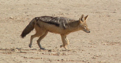 Freitag, 20. November 9, Tag 6, Kgalagadi-Transfrontier-Park, Auob-River Um halb acht sind wir an der Grenze und müssen eine halbe Stunde bis zum Öffnen des Grenzüberganges in den Kgalagadi-Transfrontier-Park warten. Schon bei der Ausreise aus Namibia wird man darauf aufmerksam gemacht, dass man zwei Nächte im Park verbringen (gemeint ist vermutlich: bezahlen) muss. |