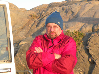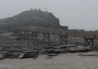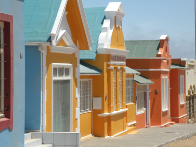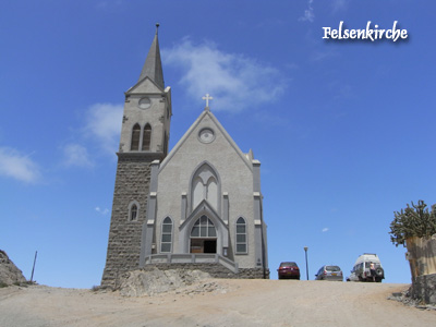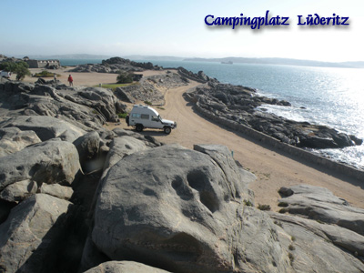Dienstag, 24. November 9, Tag 10, Lüderitz In der Früh ist es beinahe windstill. In der Morgensonne nehmen wir unser Frühstück ein, dessen Zutaten aus einem nun warmen Kühlschrank kommen, dessen Error-Licht wieder blinkt. Es ist zum verrückt Werden! In einer Werkstatt lassen wir den dritten Keilriemen einbauen und kaufen einen neuen Satz von Riemen. Auch hier muss ich dem Mechaniker genau auf die Finger schauen, um ein Haar verbiegt er die Achse des Spannrades. Um das Kühlschrank-Problem nimmt er sich nicht an, sondern empfiehlt uns eine Elektrik-Werkstätte. Da mir die aber auch nicht den Eindruck großer Kompetenz vermittelt, suchen wir ein Internetcafe auf und rufen den Servicedienst des Kühlschrankherstellers an. Irgendwie glaub ich mittlerweile, dass doch das Problem im Gerät liegt. Doch die meinen, es kann nur an der Zuleitung liegen. Ich werde mich am Abend nochmals damit beschäftigen. Mittlerweile hat sich nämlich ein anderes Problem ergeben: Soeben habe ich unseren Reisebericht hochgeladen und beim Ansehen der aktualisierten Seiten festgestellt, dass ich eine Datei auf meinem Notebook überschrieben habe. Und dummerweise auch auf dem Server. Weg. Einfach so. Keine Kosten und seine Mühen scheuend kontaktiere ich via Skype meinen Softwareberater Florian. Doch er hat die Seite nicht in einem Cache-Speicher. Nach diesen Unannehmlichkeiten geben wir uns eine Stadtrundfahrt, bei der wir die teilweise recht gut restaurierten Gebäude deutschen Stils bestaunen. Wir fahren auch rauf zur Felsenkirche, die zwar offen, aber laut einer Damenstimme aus dem Inneren doch geschlossen ist. Die Speisekarte des Restaurants, in dem wir kurz darauf sitzen, führt unter anderem ein Ladies-Rump-Steak mit 250 Gramm und ein Gents-Rump-Steak mit 500 Gramm. Als ich ein Steak bestelle, fragt die Kellnerin allen Ernstes, welches! Am Nachmittag machen wir eine Rundfahrt durch die spektakuläre Mondlandschaft der Lüderitz-Halbinsel zum Diaz-Point, wo vor über 500 Jahren Bartolomeu Diaz gelandet ist. Die Strände der Halbinsel sind dunkelsandig und durch wilde Klippen getrennt. Der Diaz-Point ist ein Felsvorsprung, der durch einen Holzsteg erreicht werden kann und von dem man durch den Nebel auf das peitschende Meer hinunterblickt. Auf einer kleinen Felseninsel tummeln sich viele Robben. In der Großen Bucht gehe ich den flachen Strand ins Wasser hinaus, doch als meine Füße bis zu den Knöcheln im Wasser sind, halte ich es vor Kälte nicht mehr aus. Das Wasser hat bestimmt keine 15 Grad. Leider ist auf der Halbinsel striktes Campierverbot. Da wir aber auch nicht auf den windexponierten Campingplatz zurückwollen, fahren wir auf der nach Lüderitz führenden Straße zurück und campieren am Rande des Diamantensperrgebietes in der Wüste. Hier ist es zwar auch windig, aber um einiges wärmer. Außerdem gibt's am Campingplatz keine Wüste. Ich nehme mir nun nochmals den Kühlschrank vor, demontiere den Stecker für die 12 V-Steckdose und schließe ihn direkt an der Batterie an. Das Error-Licht ist weg. Doch leider nur für kurze Zeit. Nach einer halben Stunde blinkt es wieder und in der Früh wird der Kühlschrank wieder ein Warmschrank sein. Km 119/2.584/30.768.