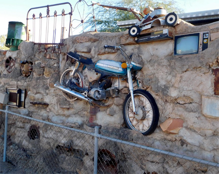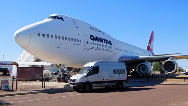 Der Tag beginnt mit einer Polizeikontrolle. Gut ein Dutzend Polizisten lassen jeden Fahrer ins Röhrchen Blasen (schon wieder!) und kontrollieren die Papiere. Das ist in unserem Fall spannend, weil wir nicht wissen, ob unsere temporäre Fahrzeugregistrierung aus dem Northern Territory in Queensland gilt oder nicht. Der Polizist weiß es auch nicht, berät sich mit Kollegen und lässt uns schließlich weiterfahren. In dubio pro reo wahrscheinlich. Die Attraktion von Winton, einem verschlafenen, aber sehr sympathischen Städtchen, ist Arno's Wall, eine Mauer, in die der Künstler alltägliche Gebrauchsgegenstände eingemauert hat: Teller, Mixer, Näh- und Schreibmaschinen, Fernseher, Maschinenteile, Rasenmäher, Radkappen, Räder, sogar ganze Motorräder, und, und, und. Am Stadtrand gibt es dann noch den Musical Fence, einen Zaun aus fünf übereinander verschieden stark gespannten Eisendrähten, auf denen man Musik machen kann. Daneben befindet sich ein Schlagzeug aus Schrottteilen. Die kleine Stadt Longreach gilt als Geburtsort der Fluglinie Qantas. Hier steht eine Boeing 747, ein Jumbo-Jet, sehr beeindruckend in der Landschaft. Zum Preis einer Disneyland-Tageskarte könnte man den Flieger besichtigen und gegen eine Aufzahlung könnte man auf einer Tragfläche herumlatschen. Wir sparen uns das, da der Jumbo-Jet ohnehin nicht zu übersehen ist und von innen haben wir schon einen gesehen. Zwölf Stunden lang sogar. Ein paar Kilometer weiter, in Ilfracombe überrascht uns die Machinery Mile, eine Ausstellung unzähliger liebevoll restaurierter alter landwirtschaftlicher Maschinen und Fahrzeuge, die neben der Straße über geschätzt einen halben Kilometer aufgereiht sind. Auf der Fahrt am Capricorn Highway den südlichen Wendekreis entlang nach Osten geht es zunächst wieder durch Weide- und Buschland, später gibt es auch Wälder, es wird hügelig. Km 609/7.033/69.423.