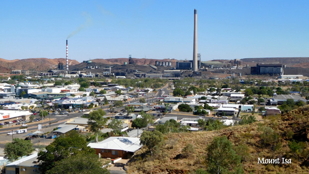 Mount Isa ist eine Bergbaustadt, schon von Ferne sieht man die Schlote, deren schwarze Abgase in der morgendlichen Inversionslage vom Wind horizontal über viele Kilometer getragen werden. Google sei dank finden wir auf Anhieb die Kfz-Zulassungsstelle, doch es ist nicht möglich, die erhoffte Haftpflichtversicherung abzuschließen. Die Dame am Schalter schreibt mir aber vier Versicherungsagenturen auf, bei denen man online abschließen kann. Das versuche ich auch, es funktioniert aber nicht, weil ich in Queensland keinen Hauptwohnsitz habe, weil das Auto nach dem Kauf zum Wohnmobil umgebaut wurde, oder weil der Sprinter nicht in der jeweiligen Fahrzeugdatenbank enthalten ist. Also schicke ich jeder Versicherung ein Mail und hoffe auf Antwort. Wir tanken den Zerberus auf und müssen feststellen, dass wir für die 1.167 Kilometer von Alice Springs bis hierher 210 Liter Diesel benötigt haben. Anscheinend hat der stets herrschende Gegenwind für den unglaublichen Verbrauch von 18 Litern geführt. Bei einem Reifenhändler haben wir Glück und wir bekommen einen BF Goodrich. Wir sind nun wieder mit sechs gesunden Reifen unterwegs, vier davon haben sogar die gleiche Größe. Vom Aussichtsberg haben wir beim Mittagessen einen interessanten Blick auf die Stadt und die Bergbauindustrieanlagen. Die Straße führt nun zunächst durch hügeliges Gelände, bietet aber bald wieder den gewohnten Busch und ab der Kleinstadt Cloncurry über hunderte Kilometer flaches Weideland, alle zirka 100 Kilometer ein Dorf, eines armseliger als das vorige: McKinday, Kynuna, Weiler mit ein paar ärmlichen Blechhäusern, einem herunter gekommenen Motel mit Kneipe und Tankstelle. Wie schon gestern überfällt uns nach Sonnenuntergang eine Invasion winziger Mücken, die zwar nicht stechen, aber überall hinfliegen und -kriechen. Sie schwirren zu hunderten im Wohnmobil an der Decke, fliegen einem ins Gesicht, kriechen in Augen, Nase und Ohren, sind im Nu eingeatmet, krabbeln unter Ärmel und Hosenbeinen, stürzen sich todesmutig in Pfanne und Kochtopf, landen auf dem Essen, auf dem sie kleben bleiben. Das ist doch ein wenig nervig! Km 511/6.424/68.814.