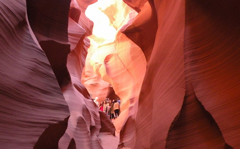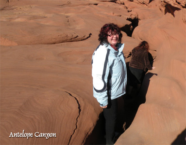 Wir stehen früh auf, um das Monument Valley noch einmal, jetzt im ersten Morgenlicht, zu erleben. Die weitere Fahrt führt durch endlose Prärielandschaften. Kurz vor Page sehen wir uns den Lower Antelope Canyon an (26 USD p.P.!). Hier hat ein Zufluss des Colorado einen engen und verwinkelten Canyon in den Sandstein gegraben. Wir steigen durch eine Spalte im Boden ein und sind im Nu von bizarr geformtem Sandstein umgeben. Dort, wo von oben Licht einfällt, leuchten die bogig geformten Wände in verschiedenen Rot-, Orange- und Goldtönen. Der Canyon ist etwa 400 Meter lang und wir kommen aus dem Staunen nicht heraus. Am Nachmittag machen wir noch einen Abstecher zum Colorado Horseshoe Bend, der hufeisenförmigen Biegung des Colorado River. Susi hat sich leider im Antelope Canyon ein wenig überanstrengt und will den sandigen Weg nicht auf sich nehmen. Dennoch blicke ich nicht alleine von den Klippen zum gebogenen Colorado hinunter, eine Menge Chinesinnen tut das auch. Beim Glen-Dam überqueren wir wieder den Colorado River; hier wird der Fluss zum Lake Powell, dem angeblich größten Wassersportgebiet der USA, aufgestaut. Mi 228/958.