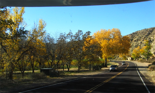 Wir haben lange geschlafen und fühlen uns besser. Am East-Entrance des Zion-Nationalparks haben wir Glück. Üblicher Weise müssen Wohnmobile und andere breite oder hohe Fahrzeuge im Konvoi und im Einbahnsystem durch den Tunnel fahren, um die maximale Tunnelhöhe ind er Mitte ausnützen zu können. Für diese Fahrzeuge wird dann eine Gebühr von 25 USD eingehoben. Da unser Womo halbwegs klein ist, lässt man uns die Spiegel einklappen und normal und ohne Gebühr durchfahren. Wir fahren im Park den Scenic Drive hoch und wieder runter, können uns aufgrund der sibirischen, nein, hier heißt es wohl alaskischen Temperaturen und der Tatsache, dass wir noch immer nicht ganz fit sind, nicht zu den Spaziergängen entschließen, die zu jenen Punkten führen, an denen der Park seine besondere Schönheit offenbart. Während anderswo die Bäume vielfach schon kahl sind, tragen sie hier noch ihr bunt gefärbtes Laub. Wir verlassen das Gebirge, queren den Highway Las Vegas - Salt Lake City, erreichen wieder Nevada und machen einen Halt an der Cathedral Gorge, wo wir in der Sonne sitzen. Wir übernachten an einem sehr netten Platz unter Pinien neben dem Highway 93. Mi 209/1.339.