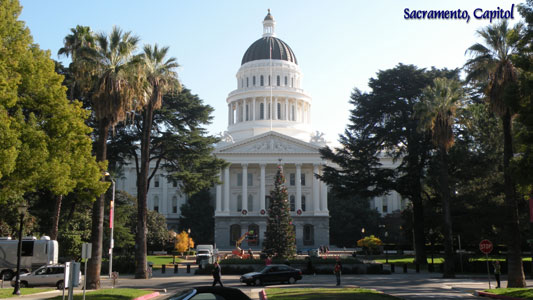 Susi wacht wieder mit verklebten und nun auch brennenden Augen auf. Es ist klar, dass sie nun rasch eine anständige Behandlung braucht. Die nächst Stadt ist Placerville. Hier versuche ich's mal wieder in einer Apotheke. Wahrscheinlich liegt's daran, dass diesmal der Herr Magister persönlich anwesend ist, vielleicht auch am vorgelegten Rot-Kreuz-Ausweis, dass ich antibiotische Augentropfen kriege. Auf der Weiterfahrt geht es immer wieder stufenweise bergab, und auch wenn wir gestern schon mehr als 1.500 Höhenmeter aus der Siera Nevada herabgefahren sind, folgt jedem Plateau wieder ein neuer Abstieg. Mit 40 Metern über dem Meeresspiegel ist dann Schluss, ist die Ebene erreicht, in der Sacramento liegt. Die Stadt selbst, die wir auf sechsspuriger Autobahn erreichen, liegt vier (!) Meter über Meeresniveau, obwohl sie zirka 100 Kilometer vom Meer entfernt ist. Der Sacramento River hat hier praktisch kein Gefälle mehr. Sacramento, die Hauptstadt Kaliforniens, gefällt uns sehr, besonders die Altstadt, in der zahlreiche Gebäude aus der Goldgräberzeit erhalten sind bzw. restauriert wurden. Auf dem Bahnhof des Railroad Museums steht ein alter Zug der Southern Pacific Rail, unweit auf dem Sacramento River hat ein alter Raddampfer angelegt, der als Ausflugsschiff seinen Dienst versieht. Nach den kalten Tagen im Hochland des Great Basins empfinden wir die Temperatur hier sehr mild. Hier haben sich eben die Blätter der Bäume gefärbt. Auf Orangenbäumen vor dem Kapitol hängen fast reife Früchte. Da wir bei unserem Besuch San Franciscos neulich eine Fahrt über die Golden Gate Bridge ausgelassen haben, wollen wir heute tun, wovon unser Reiseführer abrät: Uns mit einem Wohnmobil in den Verkehr des Stadtzentrums stürzen. Wir tun das nicht aus Unvernunft, sondern weil wir gesehen haben, dass die Stadt ganz bestimmt eines nicht hat: ein Verkehrsproblem. Es ist eigentlich immer relativ wenig Verkehr, es ist überall reichlich Platz und es gibt keine Staus. Wir fahren im Norden um die San Francisco-Bay und kommen über die Golden Gate Bridge neuerlich nach San Francisco. Leider ist das Wetter heute nicht so schön wie bei unserem ersten Besuch. Wir queren das Stadtzentrum über den Nob Hill und fahren auf der zweistöckigen Bay Bridge nach Treasure Island (wo wir einen Hot Dog essen) und wieder zurück. Auf dem Highway Nr. 1 beginnen wir nun die Fahrt der Pazifikküste entlang nach Süden. Mi 216/2.079.