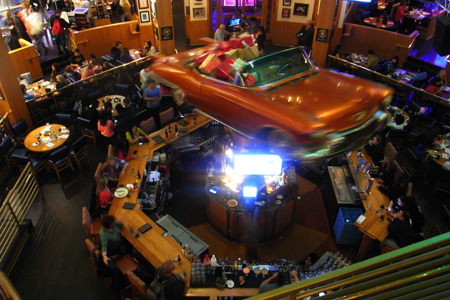 Wir werden wach und sind seekrank. Draußen geht seit Stunden ein Sturm, der unser Womo schaukelt wie ein Schiff. Auf der kurvenreichen Weiterfahrt auf der Küstenstraße ist der Kübel total schwer auf der Straße zu halten, weil nach jeder Kurve der Wind aus einer anderen Richtung kommt. Erst im Lauf des Vormittags lässt der Wind nach. Leider nicht der Regen. Habe ich schon gesagt, dass es schüttet? It never rains in Southern California ist anscheinend nur ein Songtitel. Wir halten kurz an einer Sandbucht, wo hunderte Robben und Seekühe liegen, denen der Regen nichts auszumachen scheint. Im Besucherzentrum von Hearst Castle kaufen wir nur einen Kaffee und verzichten angesichts des üblen Wetters auf die Besichtigung. Auch der Spaziergang durch die Altstadt von Santa Barbara fällt eher kurz aus. Völlig unkompliziert erreichen wir auf dem Highway 101 Los Angeles und finden auf Anhieb die Universal Studios in Hollywood, auf deren Parkplatz wir campieren. Wir machen noch eine Runde durch den Universal Citywalk, eine Genussmeile mit Lokalen, Geschäften und Kinos, trinken im Hard Rock Cafe ein paar Cocktails und essen schließlich bei Tony Roma's hervorragende Steaks (Sabine, danke für dein Weihnachtsgeschenk!). Mi 262/2.510.