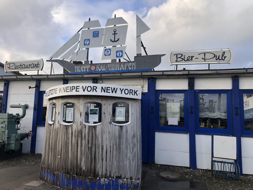 Um 4 Uhr 30 starte ich die tausend Kilometer lange Fahrt an die Nordsee. Die meiste Zeit regnet und stürmt es. Um 15 Uhr bin ich in Bremerhaven. An einem SB-Waschplatz muss ich den Zerberus im Regen waschen, da er nicht unter's Dach passt. Einen Waschplatz für höhere Fahrzeuge konnte ich auch nach längerer Suche nicht finden. Im Stadtzentrum esse ich super gut und sehr günstig in einem portugiesischen Restaurant. Ich parke das Wohnmobil im Hafen direkt vor dem Büro von Wallenius Wilhelmsen, wo es morgen Früh inspiziert wird. Heute will ich mir noch die Füße vertreten und spaziere zum "Treffpunkt Kaiserhafen", der "Letzten Kneipe vor New York". Das Lokal wäre eigentlich total gemütlich, aber leider ist hier tote Hose und so gehe ich nach zwei kleinen Bieren und einem Aquavit nach "Hause" und lege mich schlafen. In der Nacht stürmt es heftig. Km 1.014./1.014/144.630.