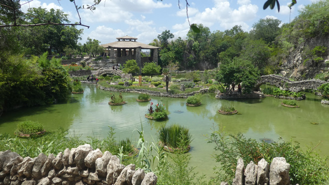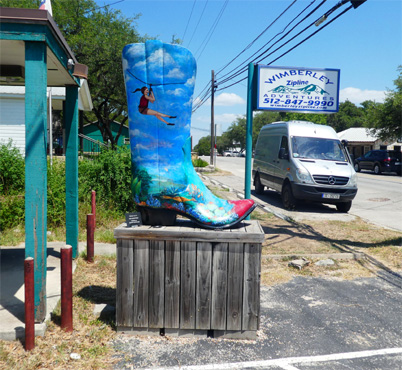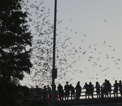 In San Antonio sehen wir uns als erstes The Alamo an. Es ist ein eher unscheinbares Gebäude eines ehemaligen Forts, das im Krieg gegen die Mexikaner von den Texanern vergeblich zu halten versucht wurde. Die Räume sind leer und es gibt kaum etwas zu sehen, aber es pilgern massenhaft Amis hierher, hat wohl etwas mit Nationalstolz zu tun. Wir sehen uns noch die San Fernando Cathedral an und spazieren dann den River Walk am Ufer des San Antonio River entlang. Der schmale Fluss windet sich in engen Kurven durch die Stadt, beidseits ist Fußgängerzone mit unzähligen Lokalen, und das alles gut ein Stockwerk unter der übrigen Stadt. Wir machen eine kurzweilige Bootsfahrt, die vom Kapitän humorvoll kommentiert wird. Am Stadtrand hat man in einem aufgelassenen Steinbruch eine hübsche grüne Oase geschaffen, den Chinese Tea Garden. Auf dem Weg nach Austin halten wir in Wimberley, der "Stiefelhauptstadt" der USA. Hier kann man die typischen Texasstiefel kaufen und vor den Geschäften stehen mannshohe Stiefel in den buntesten Farben. In Austin, der Hauptstadt Texas', ist es so heiß, dass wir uns zur Abkühlung das klimatisierte Kapitol ansehen. Bei Sonnenuntergang machen wir eine Bootsfahrt auf dem eher an einen Fluss erinnernden Lady Bird Lake, sehen uns die hübsche Skyline vor dem See an und warten auf das Ausfliegen der Fledermäuse. In Spalten der Congress Avenue Bridge leben 1,5 Milionen Fledermäuse, die jeden Abend gleichzeitig zur Futtersuche ausfliegen. Was für ein Spektakel! Wir übernachten auf einer Wiese neben dem See. Da die Fledermäuse täglich über zehn Tonnen Insekten futtern, gibt es erwartungsgemäß so gut wie keine Stechmücken. Km 269/3.591/147.207.