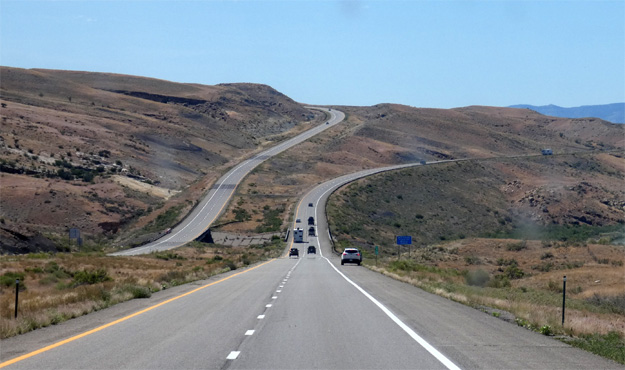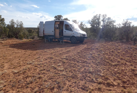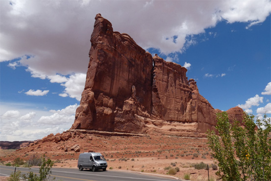 Es ist ziemlich kalt, wir haben Eis auf den Scheiben. In Grand Lake gibt es keine Autowerkstatt. Unser Plan ist, vielleicht eine in Granby zu finden oder ansonsten zurück nach Denver zu fahren. Schon nach ein paar hundert Metern fällt nun doch der Turbo aus und die Motorkontrollleuchte geht an. Ich fahre den Zerberus nun sehr hochtourig, weil das vielleicht den Partikelfilter reinigen kann. In Granby gibt es zwei Werkstätten, in der einen sagt man uns, dass sie keine Dieselfahrzeuge reparieren. Als ich von hier wegfahre, funktioniert plötzlich der Turbo wieder, der Motor hat volle Kraft und das Kontrolllicht ist wieder aus. Da schmerzt es jetzt nicht so, dass die zweite Werkstätte, ein Ein-Mann-Betrieb, der um acht öffnen sollte, um kurz vor neun noch geschlossen ist. Wir fahren weiter. Es gibt zwei Möglichkeiten, auf die Autobahn I-70 zu gelangen: Erstens direkt nach Süden, diese Strecke führt über zwei zirka 3.400 Meter hohe Pässe. Oder zweitens über Kremmling, das ist um 90 Kilometer weiter, sollten wir zurück nach Denver müssen. Die Strecke führt aber nur über einen 3.200 Meter hohen Pass. Wir entscheiden uns für die zweite Möglichkeit und weiterhin fahre ich sehr hochtourig, um den Partikelfilter "auszuglühen". Das scheint Erfolg zu haben, denn der Zerberus klettert problemlos über den Pass. Als wir die Autobahn erreichen, ist ein Zurück nach Denver kein Thema mehr. Go west! Wir passieren den auf 3.200 Metern gelegenen Wintersportort Vale und später windet sich die Autobahn durch den engen Glenwood Canyon. Wo kaum Platz für den Colorado River ist, wurden noch die Eisenbahn und die Autobahn hineingequetscht. Es geht nun stetig bergab, das Gelände weitet sich. Die Berge treten zurück, es wird eben und wüstenartig. Wir passieren die Grenze zu Utah, die Gegend ist kaum mehr bewohnt, die Autobahnabfahrten haben oft keine Namen mehr, nur mehr Nummern. Entlang der Zufahrt zum Canyonland Nationalpark ist Campieren verboten, die Campingplätze im Park sind ohnehin seit Monaten ausgebucht, wir übernachten daher schon in 20 oder 30 Kilometern Entfernung im Gelände. Es hat 33 Grad. Eigentlich wäre heute der Tag für's Sonnwendfeuer, aber auf Grund der extrem hohen Trockenheit ist offenes Feuer verboten und wird mit hohen Strafen belegt. Km 613/8.352/151.968.