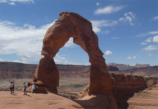 Im Arches Nationalpark gibt es tolle Felsformationen, Sandsteintürme und vor allem hunderte Felsbögen zu sehen. Manche dieser Bögen befinden sich gleich neben der Straße, zu anderen muss man ein kleines Stück gehen und wieder andere muss man sich durch eine längere Wanderung verdienen. Einer der schönsten Bögen ist der Delicate Arch, zu dem ich eine kleine Bergtour mache. Wir übernachten in Cahone, einem winzigen Straßendorf in Colorado, wo es für Durchreisende einen Gratisstellplatz im Park gibt. Km 237/8.775/152.391.
