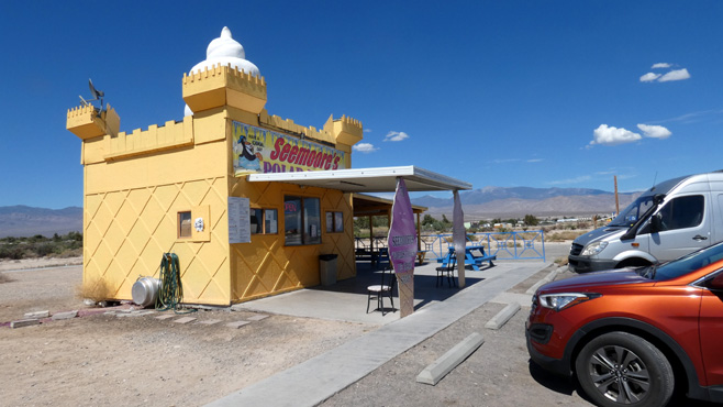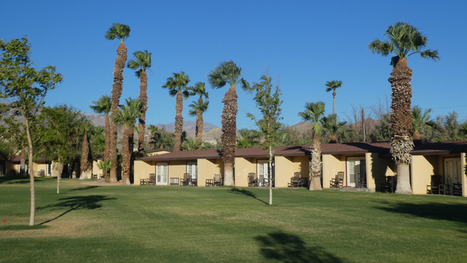 Wir genießen die Kühle des Zimmers bis Mittag, dann gehen wir einkaufen, denn die nächsten Tage verbringen wir in einsamen Gegenden, da müssen genug Lebensmittel und Getränke an Bord sein. Via Pahrump und Shoshone, zwei Orte in der Wüste, der eine noch in Nevada, der andere bereits in Kalifornien, geht es ins Death Valley. Die Temperatur steigt schnell über 40 und bald über 45 Grad. In Badwater, dem mit -86 Metern tiefstgelegenen Punkt Amerikas steigen wir kurz für ein Foto beim Salzsee aus, doch der kräftige Wind, der uns wie ein riesiger Föhn anbläst, treibt uns schnell wieder ins Auto. Am Artist Drive, einer Straßenschleife, die zu bunten Felsen führt, messen wir 50,5 Grad, das ist bei weitem die höchste Temperatur auf unserer Weltreise. Es wird bald klar, dass wir bei dieser Hitze nicht im Auto schlafen wollen, weder in der Pampa, noch auf einem Campingplatz. Wir steuern Furnace Creek, den einzigen zivilisierten Punkt im Death Valley an. Es ist eine von Thermalwasser genährte Oase, in der es außer Campingplätzen drei Luxushotels gibt. Wir haben Glück, dass wir ohne Reservierung ein Zimmer bekommen. Hier gibt es auch einen Pool, dessen Wasser zwar etwas über 30 Grad hat, aber dennoch eine Abkühlung gegenüber der Lufttemperatur ist. Km 294/10.950/154.566.