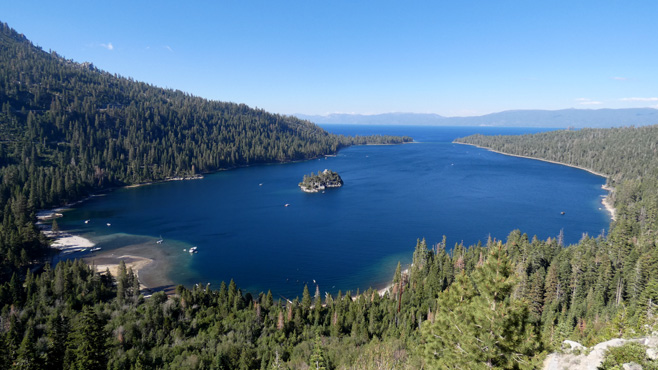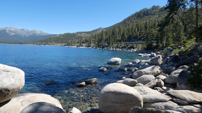 Auf unserer Fahrt nordwärts durch die Sierra Nevada machen wir einen Abstecher zur Geisterstadt Bodie. Sie hatte in der Goldgräberzeit 10.000 Einwohner und wurde um 1900 verlassen. Knapp 100 Gebäude sind noch erhalten, aber sie wurden nicht wie in einem Freilichtmuseum restauriert, sondern werden nur vor dem endgültigen Verfall geschützt, indem zum Beispiel Dächer repariert oder kaputte Fensterscheiben ersetzt werden. Das verleiht dem Ort eine besondere, aufregende, aber auch traurige Authentizität. Über den Monitor Pass und den Luther Pass geht es nordwärts. Einmal lässt sich ein Puma blicken, aber zu kurz für ein Foto. Wir erreichen den Lake Tahoe, das ist der See auf der verbrennenden Landkarte des Bonanza-Intro. Der See liegt auf 1.900 Metern teilweise in Kalifornien, teils in Nevada und ist 35 Kilometer lang und 20 Kilometer breit. Er ist sehr touristisch, überlaufen und Übernachten ist nur auf Campingplätzen möglich. Am Südwestufer befindet sich eine große Bucht mit nur kleiner Öffnung, die Emerald Bay, auf die man von Aussichtspunkten an der Straße blickt. Die meisten Campingplätze sind voll, doch dann finden wir einen Platz auf einem einfachen Campground an einem Sumpf. Mehrmals lässt sich ein kapitaler Biber blicken, der an seinem Damm baut. Km 297/12.320/155.936.
