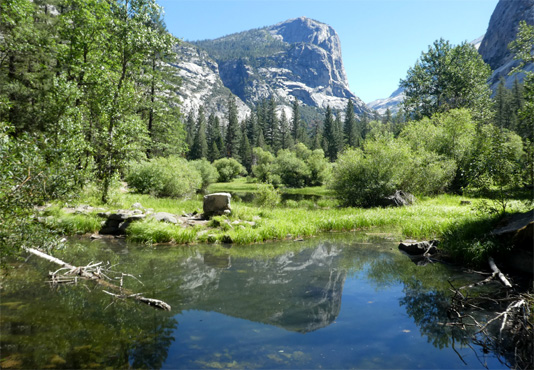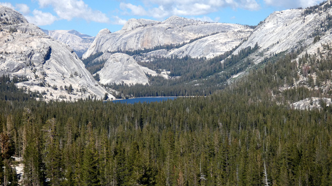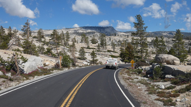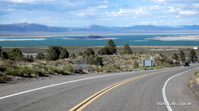 Um 5.15 ist Tagwache, um dreiviertel sechs fahren wir in den Nationalpark, erstaunlich wenige andere tun das auch um diese Zeit. Das Herzstück des Nationalparks ist das Yosemite Valley, ein grünes Tal inmitten von Bergen, überragt von riesigen Felsen, etwa dem bekannten "El Capitan". Es ist nicht so überlaufen, wie befürchtet, das wird wohl am gestrigen Feiertag anders gewesen sein. Wir wandern zum Mirror Lake und zu den Yosemite Falls, den mit 740 Metern Höhe höchsten Wasserfällen Nordamerikas. Jetzt im Sommer führen sie nur wenig Wasser und sehen nicht wahnsinnig imposant aus. Eine etwa 70 Kilometer lange, landschaftlich höchst beeindruckende Straße führt mit wenig Steigung zum 3.031 Meter hohen Tioga-Pass. Die Berge bestehen zum Großteil aus hellem, fast weißem Granit und sehen völlig irreal aus. Wir passieren mehrere Seen, dazwischen gibt es grüne Bergwiesen, es ist wunderschön. Von der Passhöhe geht es ziemlich steil tausend Meter hinunter ins Mono Basin, in dem sich der Mono Lake befindet, ein Natronsee, an dessen Südufer sich bizarr geformte Tuffsteinsäulen befinden. Wir übernachten unweit davon mit Blick auf den See. Km 207/12.023/155.639.