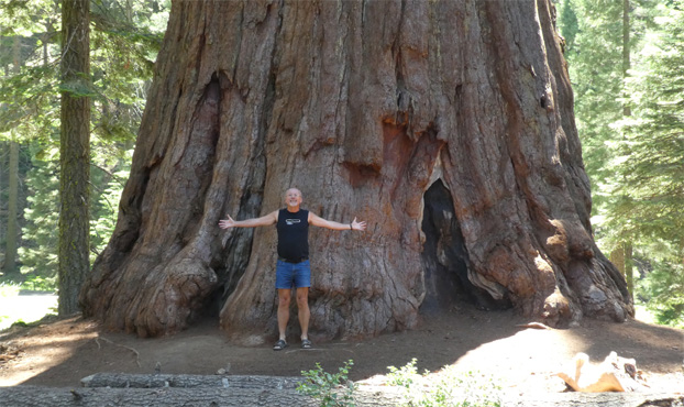 In Three Rivers gibt es eine Badestelle in einem der Zuflüsse des Sees, doch leider ist das Ufer schlammig und rutschig und so verzichten wir auf die Abkühlung. Vor dem Parkeingang des Sequoia [Seg'oija] Nationalparks hat sich schon eine lange Autokolonne gebildet, wegen eines Feiertags am Montag ist langes Wochenende, doch wir können auf einer eigenen Spur vorfahren, weil wir ja eine Jahreskarte für die Nationalparks besitzen. In vielen Serpentinen führt die Straße durch den Park in die Sierra Nevada. Von weitem sieht man einen markanten Felsen auf einem Bergrücken thronen, es ist der Moro Rock, den man besteigen kann und von dem ich einen schönen Rundumblick habe. Weil der Park total überlaufen ist, muss man in einen Shuttlebus steigen, um zu bestimmten Punkten zu gelangen. Der Park ist bekannt für die Sequoia- oder Mammutbäume, die größten Bäume der Erde (gemessen nach Volumen), die hier zwischen 1.500 und 2.100 Meter wachsen und bis zu 3.000 (!) Jahre alt werden. Der größte dieser Bäume, der General Sherman Tree, ist das größte Lebewesen der Erde. Wir übernachten außerhalb des Parks im Wald. Obwohl nur auf 1.860 Metern müssen schon eine Stunde vor Sonnenuntergang die Anoraks raus. Brrr. Km 104/11.589/155.205.