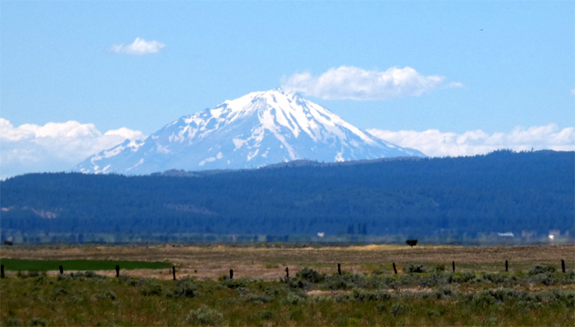 Nördlich von Gerlach befindet sich die Black Rock Desert. Sie besteht aus zig Kilomter großen, flachen Becken, in denen sich zu mancher Zeit Wasser befindet, das darin versickert und verdunstet. Der Boden ist eben und mit Sand und Salz bedeckt. Das Gebiet ist bekannt für plötzlich auftretende Sandstürme und prompt bekommen wir einen zu Gesicht. Er bläst den Sand fünfzig (oder hundert?) Meter hoch, während in ein oder zwei Kilometern Entfernung, wo wir uns befinden, nur ein leichtes Winderl spürbar ist. Unser erstes Ziel hier ist der Fly Geyser, ein Geysir, der vor Jahren nach einer Tiefenbohrung entstanden ist und ständig heißes Wasser ausspuckt. Die darin enthaltenen Mineralien haben im Lauf der Zeit einen Berg gebildet, der in den herrlichsten Brauntönen schillern soll. Es gibt fantastische Fotos im Internet. Wir wissen, dass sich der Geysir auf Privatland befindet und man Eintritt bezahlen muss. Dort angekommen, ist allerdings die Zufahrt mit Tor und Ketten versperrt und mehrere Schilder weisen in bösartigem Ton darauf hin, dass das Betreten verboten ist, mehrere Videokameras sind angebracht. Nur ein kleines Schild weist darauf hin, dass man 1,5 Meilen weiter Tickets kaufen kann. Gut zwei Kilometer weiter steht in einer Grundstückseinfahrt ein PKW mit zwei jungen Frauen, die sich als Volontärinnen vorstellen und 40 (vierzig) Dollar pro Person für eine Führung zum Geysir verlangen. Das ist uns die Sache aber nicht wert, noch dazu, wo der Geysir vom Tor aus eher mickrig, maximal fünf oder sechs Meter hoch, aussah, nur wenig spuckte und dunkelbraun-schwarz und fad aussah. Ein Flop irgendwie, kann passieren. Auf zum nächsten Ziel, den Double Hot Springs! Der Abzweig ist nur ein paar Kilometer entfernt, aber die 35 Kilometer lange Zufahrt zu den Thermalquellen in der Wüste ist nicht asphaltiert und hin und zurück sind es halt 70. Das steht nicht dafür. Planungsfehler! Es wäre nicht Amerika, stünde da am Abzweig nicht eine große Tafel mit Landkarte und Infos zu der Gegend und in einer Box sind Landkarten und Broschüren zur freien Entnahme. Wir erfahren, dass man überall campen, Feuer entzünden, Feuerwerke abschießen, ja sogar Raketen starten darf (ein Foto in der Broschüre belegt, dass das auch getan wird). Der Karte entnehmen wir, dass auch die Straße, auf der wir die Weiterfahrt geplant haben, kurz nach dem Geysir für fast hundert Kilometer nicht mehr asphaltiert ist. Weiterer Planungsfehler! Aber immerhin zeigt die Karte eine Alternative (Google Maps oder ähnliches steht uns mangels Internetverbindung nicht zur Verfügung und unser Offline-Navi macht keine Angaben zum Straßenzustand): Von Gerlach führt eine Asphaltstraße nach Norden bis Cedarville. Die Strecke führt weiterhin durch eintönige Wüstenlandschaften, erst ab Eagleville ringt man mittels Bewässerung dem Boden Ertrag ab. In Cedarville schwenken wir nach Südwesten und plötzlich befinden wir uns in endlosen Nadelwäldern. Am Nachmittag taucht in der Ferne der beeindruckende, 4.318 Meter hohe Mount Shasta, einer der sechs Kaskadenvulkane auf (Mt. Baker, Mt. Rainier und Mt. St. Helens haben wir schon auf vorigen Etappen gesehen). Auf der Anfahrt zum Lassen Vulcano Nationalpark sieht man schon den mächtigen Lassen Peak (3.187 m), den ich morgen besteigen möchte. Wir übernachten in der Nähe des Nationalpark-Gates im Föhrenwald. Zum Abendessen brät Susi Lachs und eine halbe Stunde später ist uns beiden zum Erbrechen schlecht. Da hatte wohl die Kühlkette eine Unterbrechung. Km 514/13.123/156.739.