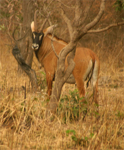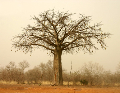 Wir besuchen den drei Länder (Niger, Burkina Faso und Benin) übergreifenden Nationalpark "W", der seinen Namen vom W-förmigen Verlauf des Niger-Flusses hat. Es besteht Führerpflicht und da außerdem Motorräder Fahrverbot haben, wollen wir einen Führer mit eigenem Wagen engagieren. Doch leider verfügt die Parkverwaltung zur Zeit über keinen funktionierendes Auto, sodass wir Karin und den Führer in unseren Wagen quetschen müssen. Obwohl wir den ganzen Tag im Schritttempo durch den Park fahren, ist die Ausbeute von Tieren, die wir vor die Linse bekommen, sehr gering: Eine Kuhantilope, Gazellen, Paviane, Eichhörnchen, Perlhühner, Warzenschweine, eine Pferdantilope, allerlei Vögel und den Hintern eines Büffels, doch weder einen Elefanten, noch irgendeine Raubkatze oder ein Flusspferd. Beeindruckend finden wir die riesigen Affenbrotbäume, die zum Teil reife Früchte tragen, und die bis zu zwei Meter hohen Termitenhügel.