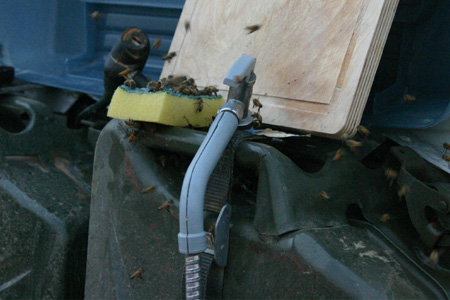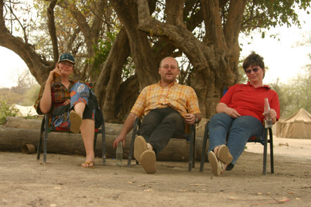 Auch heute wechselt die Landschaft nur wenig, vereinzelt gibt es Seen, der Boden wird fruchtbarer, hin und wieder taucht ein wenig frisches Grün auf. Zu Mittag ist es so heiß, dass man meinen könnte, man könnte ein Spiegelei auf der Motorhaube braten. Die Luft wird feuchter, die Insekten werden mehr. Wir befinden uns übrigens schon im Malariagebiet und haben bereits zeitgerecht die Prophylaxe begonnen. Abends umkreisen uns hunderte Bienen. Sie stürzen sich auf jeden Tropfen Wasser, etwa auf den Boden verschüttetes und im Sand versickerndes. Sie saugen sogar Wasser aus dem Abwaschschwamm und aus dem Wasserhahn.