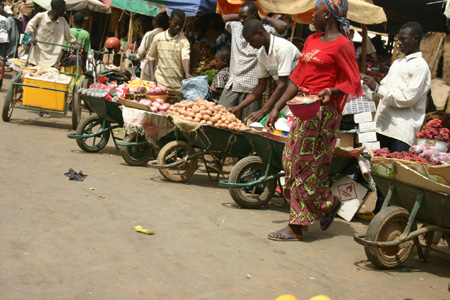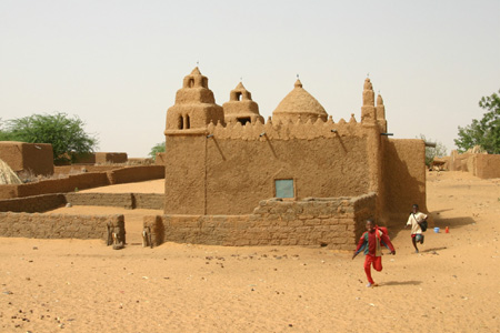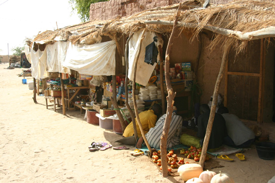 Afrika ist anders. Das merken wir zwar jeden Tag aufs Neue, wird uns aber gerade heute ganz deutlich vor Augen geführt: In Niamey, der Hauptstadt des Niger, wollen wir uns das Nationalmuseum ansehen. Als wir auf das Gelände zufahren, öffnen eifrige Wächter bereits das Tor. Wir dürfen auf dem Museumsgelände parken, was uns sehr recht ist, denn ringsum tobt ein Gewimmel von Menschen, Tieren und Fahrzeugen. Wir bezahlen an der Kasse das Eintrittsgeld, das sehr viel höher ist als im Reiseführer angegeben, aber gemessen an europäischen Maßstäben noch immer günstig: 1.000 CFA (1,5 Euro) plus 1.000 für eine Fotoerlaubnis. Doch leider müssen wir feststellen, dass das Museum wegen eines Feiertages geschlossen ist! Weil anscheinend nicht alle von dem Feiertag Kenntnis haben, sind viele Angestellte zur Arbeit gekommen, so auch die Wächter und das Kassapersonal. Obwohl wir nur den kleinen Zoo, einen Pavillon mit traditioneller Kleidung und einem Saurierskelett und den Baum der Tenere besichtigen können, erhalten wir natürlich das Eintrittsgeld nicht zurück. Der nun folgende Bummel durch das Stadtzentrum ist mächtig anstrengend: Jeder, wirklich jeder will etwas verkaufen und kann es gar nicht verstehen, dass wir ausgerechnet an seiner Ware nicht interessiert sind. Unmengen von Obst und Gemüse werden nicht nur an Ständen angeboten, sondern auch auf Decken, in Scheibtruhen, auf Tabletts oder einfach nur auf dem Boden oder in den Händen präsentiert. Hier gibt es Zuckerrohr, da liegen geduldig Hühner mit zusammengebundenen Beinen; Medikamenten-, Wasser- und Zigarettenverkäufer laufen schreiend umher. Verbogene Nägel werden genauso verkauft, wie leere Zementsäcke, in die man das nebenan gekaufte Fleisch einpackt. Zwischen all dem sitzen Schuhputzer und bügelt einer für wenig Geld mit einem eisernen, mit heißer Glut gefülltem Bügeleisen Wäsche. Und überall Bettler. Zugegebenermaßen können wir mit der Armut im Land nicht besonders gut umgehen. Jeder fragt nach einem Geschenk; das ist so wie ein Volkssport. Aber wir treffen auch auf viele vom Hunger gezeichnete Menschen, etwa vor Restaurants, in denen wir essen. Sie warten auf die Reste und es fällt schwer, ein gutes Essen zu genießen, wenn man draußen die Hungernden weiß. Was doch die räumliche Nähe ausmacht! Die Not ist so groß, dass man nur tropfenweise mit Almosen helfen kann. Viele Bettler sind behindert. Die Kinderlähmung ist allgegenwärtig. Kaum vorstellbar, dass bei uns die Impfung für alle verfügbar ist und dennoch manche "moderne" Eltern ihre Kinder nicht impfen lassen wollen. So beeindruckend die lebhafte Stadt auch ist, sind wir froh, das Gewimmel und den Lärm hinter uns zu lassen. Auf einer staubigen Straße geht es durch Savannenlandschaften. In der Nähe von Flüssen wird Reis angebaut, erste Affenbrotbäume tauchen auf.