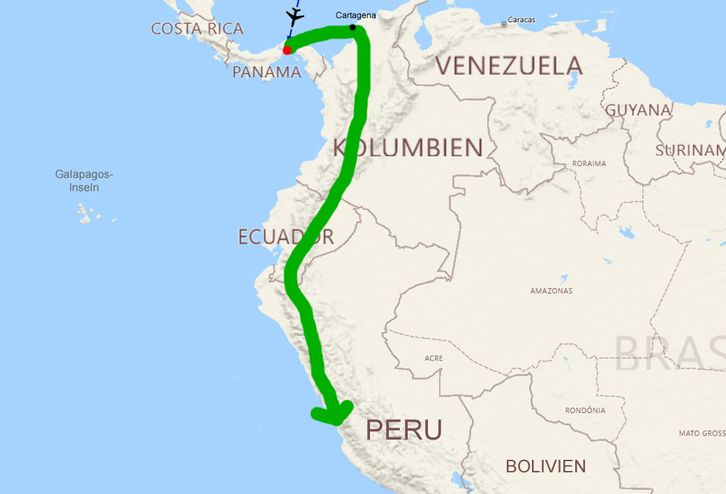 Die Abfahrt unseres Schiffes hat sich in den letzten Wochen vom unsprünglich 29. Oktober auf den 9. November verschoben. Unser Agent in Panama meint, dass dieser Termin voraussichtlich nun halten wird. Da der 3., 4., 5. und 6. November in Panama Sonn- bzw. Feiertage sind, müssen wir den Zerberus bereits am 2. November im Hafen abgeben. Die Ankunft in Cartagena ist voraussichtlich am 10. November und wegen des darauffolgenden Wochenendes können wir ihn frühestens am 14. abholen. Das heißt, wir sind zumindest 12 Tage ohne Wohnmobil. Wir denken zunächst über einen Karibik-Urlaub nach, schmieden dann aber einen völlig anderen Plan: Ich fliege alleine am 29. Oktober nach Panama, verschiffe den Zerberus und komme am 3. November wieder nach Hause. Um den 13. fliegen wir dann gemeinsam nach Kolumbien.