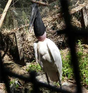 Da wir den Zerberus ja am Flughafen geparkt haben, nehmen wir für die Rückreise aufs Festland der Einfachheit halber wieder den Flieger und nicht das billigere Boot. Belize City ist eine Stadt ohne jeden Charme und bietet auch keine Sehenswürdigkeiten. Der einzige Grund, warum wir ins Zentrum fahren, ist, dass zwei unserer Brillen eine Reparatur benötigen. Etwa auf halber Strecke nach Belmopan befindet sich Belizes Zoo, der vom Reiseführer recht gelobt wird und von dem unsere Vorfahren (Josef und Brigitta Prassl aus der Steiermark, auch mit einem Sprinter unterwegs, sind uns immer ein paar Tage voraus) vor ein paar Tagen auf Facebook sehr geschwärmt haben. Der Zoo beherbergt in Mittelamerika beheimatete Tiere, aber leider zeigen sich uns nur wenige und auf vielen Gehegen sind Tafeln angebracht, dass sie zur Zeit leer sind. Wir sehen einen müden Tapir, einen Puma, einen Affen, ein Krokodil, einen Jabiru-Storch, Eulen, Adler und Papageien. Das ist für den teuren Eintritt enttäuschend wenig. An Belmopan, der kleinen Hauptstadt von Belize, würden wir vorbeifahren, aber meine Alpinschlapfen sind kaputt und ich brauche neue. Es ist nicht einfach, in der kleinen Stadt ein Schuhgeschäft zu finden. Ein älterer, aber noch sehr flinker Mann bringt mich für ein Trinkgeld in verschiedene kleine Läden, die (auch) Schuhe verkaufen. Leider gibt es überall nur Gummischuhe oder Flip Flops und erst im sechsten oder siebten Laden krieg ich Damenschlapfen aus Leder, in die meine Füße gerade hineinpassen. Wir übernachten an der Straße nach Caracol als einzige Gäste auf einem Campingplatz. Km 156/9.616/168.489.