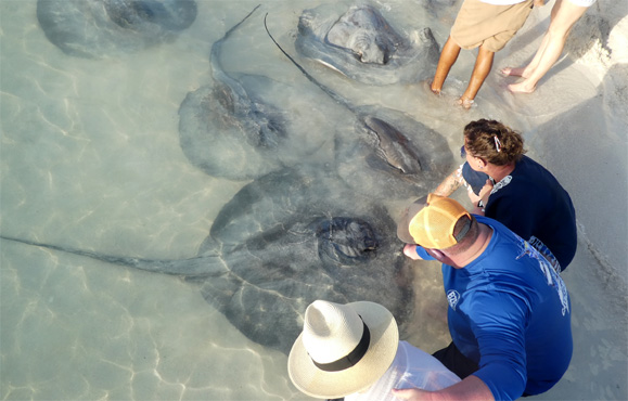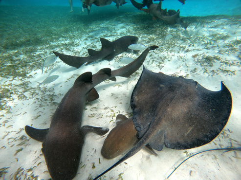 Wir hängen faul herum, genießen die belizische/karibische/kreolische Küche und sehen beim Füttern der Rochen am Strand zu. Geduldige entdecken auch das eine oder andere Seepferdchen im seichten Wasser.