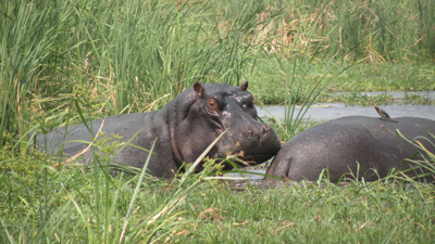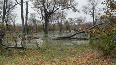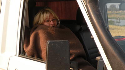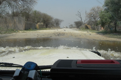 Dienstag, 28. September 10, Tag 13, Moremi-Nationalpark, Okavango-Delta Was für eine Nacht! Kurz nach Mitternacht erwache ich mit heftigen Bauchkrämpfen und erreiche nur mit Mühe die Buschtoilette, wo ich einen kalten Schweißausbruch am ganzen Körper kriege und kollabiere. Sabine kümmert sich rührend um mich. Nach einer Stunde ist alles vorbei, ich habe keine Schmerzen mehr, bin frisch geduscht und habe schon viel getrunken. Sabine hat es auch erwischt, aber ein wenig anders: Erst in der Früh, als wir bereits in Richtung Moremi-Nationalpark gestartet sind, klagt sie über Übelkeit. Sie hat trotz schon fast 30 Grad Außentemperatur Schüttelfrost und kurz darauf Fieber. Endlich Gelegenheit zur Revanche: Ich kümmere mich rührend um sie. Sie kriegt zwei Pillen aus dem Arzneikoffer und ist zu Mittag wieder die alte. In der Zwischenzeit kämpfe ich mit der Orientierung. Der Abzweig der nach Westen führenden Moremi-Piste war zwar einwandfrei markiert, endet jedoch kurz nach der Querung (S19 07.354 E23 52.935) einer breiten Nord-Süd-Piste im Nichts. Nach einigen Versuchen, Spuren zu finden, retten wir uns mit Hilfe unseres GPS-Gerätes (ohne ihm wären wir hier garantiert lange herumgeirrt) zurück auf die Nord-Süd-Piste, der wir nach Süden, der wahrscheinlicheren Richtung, folgen. Nach 200 Metern finden wir auch schon einen Abzweig (S19 07.697 E23 52.940) nach Westen mit einer riesigen Tafel "Moremi North Gate 20 km". Doch nach kurzer Fahrt endet die Piste im Sumpf. Vielleicht sollte ich an dieser Stelle erwähnen, dass der Moremi-Nationalpark das Herzstück des Okavango-Deltas ist. Erstaunlicher Weise sind gerade jetzt am Ende der Trockenzeit die Wasserstände im Delta besonders hoch. Glücklicher Weise treffen wir einen Safariwagen, dessen Fahrer uns die Ausweichpiste beschreibt. Also zurück auf die Nord-Süd-Piste, auf dieser drei bis vier Kilometer nach Norden (S19 06.055 E23 52.937) und dann nach Westen abbiegen. Auf einer recht guten Piste brausen wir dem Gate zu und überqueren kurz vor dem Khwai-Village eine große Brücke. Dann ist es mehrmals wieder sehr schwierig, einen Weg zu finden, der nicht im Schlamm endet. Zu guter Letzt wagen wir uns in eine überflutete Passage, die so tief ist, dass die gesamte Motorhaube eintaucht. Das beste kommt aber noch an der Einfahrt ins Khwai-Village: Hier ist ein Fluss zu queren, dessen Passage mit zwei Stangen markier ist. Es gibt auch Spuren von Fahrzeugen, die hier durchgefahren sind. Also wagen wir uns unter Verwendung aller erdenklichen Allrad-Hebel in den Fluss, der so tief ist, dass das Wasser durch das blöderweise offene Seitenfenster hereinschwappt. Trotz dem Schrecken, den wir kriegen, nehme ich den Fuß nicht vom Gaspedal, sondern drücke es weiter fest durch. Unser Buschtaxi macht seinem Namen alle Ehre und bringt uns, wenn schon nicht trocken, so doch gut ans andere Ufer. Kurz nach dem Dorf fahren wir durch das North-Gate (S19 10.200 E23 45.010) in den Park, zwei Stunden später als wir gedacht haben. Wir machen nun eine Fahrt über den wie eine Halbinsel ins Delta ragenden Teil des Parks. Zunächst sind immer wieder Wege nicht passierbar, enden im Wasser. Es bietet sich aber oft die Gelegenheit, die grüne Überflutungslandschaft zu bestaunen. Hier finden sich zudem auch viele Tiere, darunter auch einige Flusspferde. Nach einiger Zeit treffen wir auf eine Gruppe Polen, die mit ihren gemieteten Geländewagen ratlos am anderen Ufer einer überfluteten Passage stehen. Einer watet im Wasser herum, kommt dann auf uns zu und fragt uns, ob wir wissen, wo man da drum rum fahren kann. Ich meine, man kann da wohl durchfahren, wenn das Wasser nicht mal bis zum Schritt geht. Und weil wir ohnehin auf deren Seite wollen, fahren wir einfach durch. Da bleiben denen die Münder offen stehen und langsam traut sich ein Fahrer nach dem anderen auch durch. Witzigerweise sind die Passagiere aber nicht sehr mutig, die waten lieber durch das Wasser, als dass sie mitfahren. Auf der weiteren Fahrt gibt es noch einige Brücken zu passieren, wobei die eine so tief gelegen ist, dass das Auto doch ganz schön nass wird und die andere so wenig vertrauenserweckend ist, dass wir lieber neben ihr durchs Wasser fahren. Im südlichen Parkteil, der sehr herbstlich wirkt, weil die Bäume jetzt am Ende der Trockenzeit ihre Blätter abwerfen und viel Laub am Boden liegt, gibt es nur wenige Tiere zu sehen. Wir verlassen den Park durch das Süd-Gate (S19 25.540 E23 38.730), wo wir nachträglich Eintritt bezahlen (120 BWP = 13,28 EUR p.P. + 50 BWP = 5,50 EUR für's Auto) und übernachten kurz danach im Busch. Bei der Durchsicht der heute geschossenen Fotos fällt uns auf, dass wir unser vorderes Kennzeichen verloren haben, vermutlich bei einer der Wasserdurchfahrten. Km 179/3.480/39.945. |