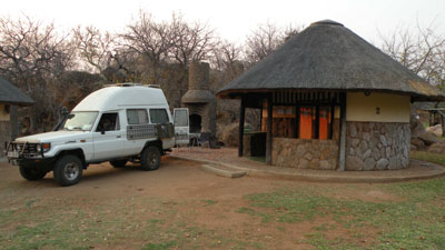 Montag, 20. September 10, Tag 5, Hazyview Über eine Piste gelangen wir nach Pilgrim's Rest (S24 54.007 E30 45.134), eine Art Museumsdorf, in dem die Häuser und vor allem Läden im Stile der Goldgräberzeit erhalten wurden. Jede Menge Souvenirläden säumen die Hauptstraße, alle mächtig überteuert. Wieder in Graskop finden wir ein Bestattungsunternehmen mit Internetcafe. In Hazyview wollen wir in einer Werkstätte unsere Dieselpumpe fixieren lassen. Diese pumpt Treibstoff vom hinteren in den vorderen Tank; ihre Halterung ist bei der letzten Reise im Dezember abgebrochen und wir haben sie nur notdürftig mit Kabelbindern fixieren lassen. Leider findet man keine Lösung im Sinne einer Reparatur, sondern der Mechaniker will eine neue Pumpe besorgen und einbauen. Als ich jammere, wie teuer diese Pumpen sind und sie ja noch voll funktionstüchtig ist, bietet er uns eine gebrauchte an, die er kurzerhand aus einem zufällig in der Werkstatt stehenden Geländewagen ausbaut. Dieser Wagen kriegt unsere eingebaut, die sich dort auch gut fixieren lässt. Der Spaß kostet uns 200 ZAR (22 EUR) für die Pumpe und 150 ZAR (16,65 EUR) für die gut eine Stunde Arbeit. Da Zusehen müde macht, brauchen wir dringend zwei Rindersteaks, die wir uns in einem netten Restaurant reinhauen. Nach kurzer Fahrt erreichen wir das Phabeni-Gate (S25 01.488 E31 14.485) des Krüger-Nationalparks, wo man wie üblich keine Freude mit uns hat, weil wir keinen Nachtplatz reserviert haben. Ebenso wie üblich geht es dann irgendwie doch. Richtiges Wilderness-Feeling will nicht aufkommen, fahren wir doch teils auf Asphalt und die erlaubte Höchstgeschwindigkeit von 50 km/h wird von fixen Radargeräten und Polizisten mit Laserpistolen überwacht. Auch lassen sich anfangs keine Tiere blicken. Nach einer Stunde Pirschfahrt haben wir lediglich einen Geier und ein paar Gazellen gesehen. Dann linsen aus dem Sabie-River immerhin ein paar Flusspferde und kurz vor dem Sukuza-Camp (S24 59.76 E31 35.54) tummeln sich plötzlich zwei Giraffen, ebensowenige Elefanten, ein paar Antilopen, wenige Zebras und eine Gefleckte Hyäne. Die Übernachtung im Camp kostet 150 ZAR (16,65 EUR). Km 162/687/37.152. |