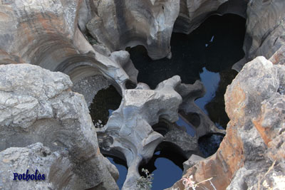 Sonntag, 19. September 10, Tag 4, Panorama-Route In der Nacht weckt uns ein vorbeidonnernder Güterzug, ansonsten frieren wir in aller Stille. In Lydenburg, das jetzt eigentlich Mashishing heißt, sehen wir uns die Freilicht-Exponate des Museums (S25 6.25 E30 29.17) an. Über den Long-Tom-Pass fahren wir nach Sabie, wo wir die Bridal-Veil-Falls (S25 05.029 E30 43.677) und die Sabie-Falls (S25 05.259 E30 46.711) ansehen. Entlang der Strecke wurden irgendwann die Wälder in großem Stil abgeholzt. Nun wurde endlich wieder aufgeforstet. Die Bäume sind vielleicht fünf bis zehn Jahre alt. Auf dem Weg nach Graskop, wo wir ein hervorragendes verspätetes Mittagessen einnehmen (sehr zu empfehlendes Restaurant gleich am Ortseingang, S24 56.033 E30 50.382), machen wir noch Abstecher zu den Mac-Mac-Pools (S25 00.087 E30 49.196) und Mac-Mac-Falls (S25 00.895 E30 49.850), beides nicht besonders spektakulär, aber unmittelbar am Weg liegend. Die Panorama-Route führt nun entlang des Blyde-River-Canyons, in den man immer wieder tolle Blicke hat, etwa auf den Pinnacle (S24 54.655 E30 51.268), einen ca. 30 Meter hoher alleinstehenden Felsturm, auf den man von oben blickt. Durch God's Window (S24 52.591 E30 53.289) kann man weit nach Osten, bis in den Krüger-Nationalpark sehen. Sehr nett finden wir die Berlin-Falls, wo ein Wasserfall etwa 45 Meter in ein großes Wasserbecken stürzt. Schließlich beeindrucken uns die Bourke's Luck Potholes sehr, vom Wasser ausgewaschene Felsmulden, auf die man von zwei Brücken hinunterblickt. An allen diesen Orten sind ein paar Rand Eintritt zu bezahlen. Wir übernachten am Rand eines lichten Waldes. Km 200/525/36.990. |