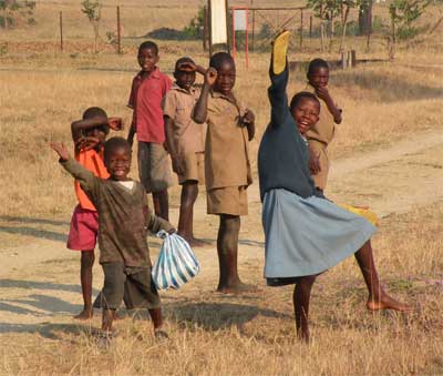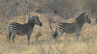 Freitag, 24. September 10, Tag 9, Great Zimbabwe Der Tag beginnt freudig: Der gestrige Versuch einer Reparatur des Akkuladegerätes einer unserer Kameras war erfolgreich, der Akku ist voll. Bei Sonnenaufgang steigen wir zu den Bergruinen des Great Zimbabwe Monuments auf. Sie sind auf einem Hügel gelegen, der einen schönen Blick auf die gestern besichtigten Talruinen bietet. Allerdings ist es sehr dunstig, ein Phänomen, das uns bereits seit Johannesburg begleitet. In Masvingo biegen wir Richtung Bulawayo ab, wählen dann aber ab Zvishavane die Panoramastraße bis Geru, die wohltuende Abwechslung zum eintönigen Buschland bietet. Die Straße führt kurvenreich über ein flaches Gebirge; interessanter Ort mit heruntergekommenen Kolonialbauten ist Shurugwi. In Geru essen wir relativ teuer in einem Chicken-Fastfood-"Restaurant". Dann fahren wir wieder durch eintöniges Buschland bis zum Abend. Wir passieren mehrere nervige Polizeikontrollen, die erste davon mit Laserpistole ausgerüstet. Die Buße lässt sich in gewohnter Weise auf 10 USD runterhandeln. Es wird übrigens jedes Mal ein Strafzettel ausgestellt. Etwa 20 Kilometer vor der Zufahrt zum Hwange-Nationalpark bietet sich die Gelegenheit, von der viel befahrenen Straße in den Busch abzubiegen, der sich bald ein wenig lichtet und einen netten Nachtplatz bietet. Km 651/2.410/38.875.